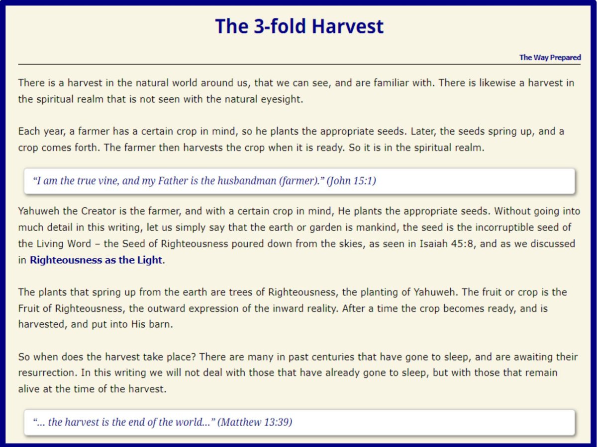 Matthew 24 : 29 - 31Wheat [gathered] separatedfrom Tares [to be burned] [latter harvests include grapes & figs]3rd Rapture at end of 7-year Tribulation but before Wrath of God is poured out on unrepentant and unbelieving.