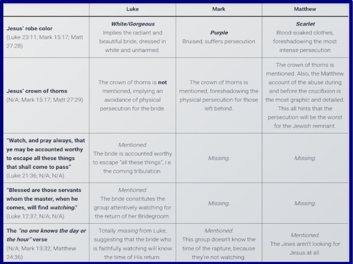 The Tribulation is a time of testing and refining of those who either take their relationship with the LORD as passive or non-existent. Scripture supports different views on this. Within Scripture are symbolic examples of these groups: