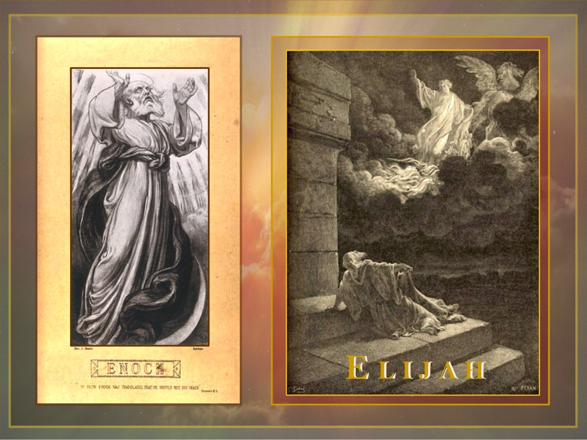Enoch ~ Taken before the flood judgment ( Genesis 5:24 ) “Enoch “walked with God, and was not, for God took him” He is a picture of God removing the Bride of Christ before the Tribulation. ( 1 Thessalonians 4:16-17 ). The LORD promises “I will keep you from the hour of trial which is coming on the whole world.” ~ Revelation 3:10