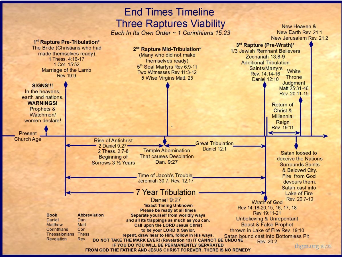 - The rapture(s) ~ it may be that there are two more raptures in the 7-year Tribulation (as noted in the timeline above). We do know there is at least one. Scripture does reveal different groups: