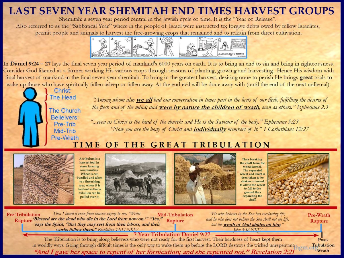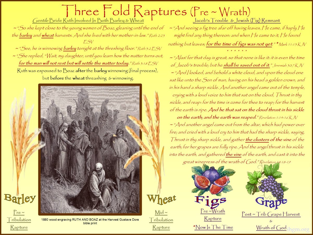 Matthew 24 : 29 - 31Wheat [gathered] separatedfrom Tares [to be burned] [latter harvests include grapes & figs]3rd Rapture at end of 7-year Tribulation but before Wrath of God is poured out on unrepentant and unbelieving.