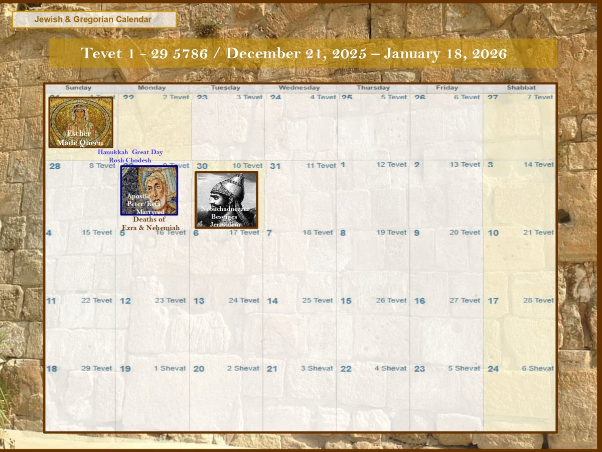 Tevet 5786 begins with the end of Hanukkah, The Feast of Dedication which began 25 Kislev [Jewish Calendar] and December 21, 2024 [Gregorian Calendar]. Applicable portions from Kislev are repeated here for your convenience. The entire page can be viewed > Here